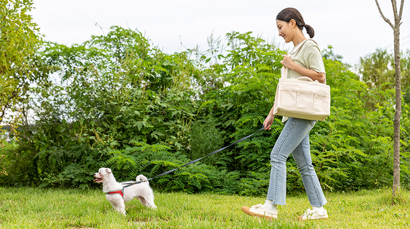 산책할 때 시선을 사로잡는 추천 맞춤형 애견 산책가방입니다. 개와 노른자 복만두백