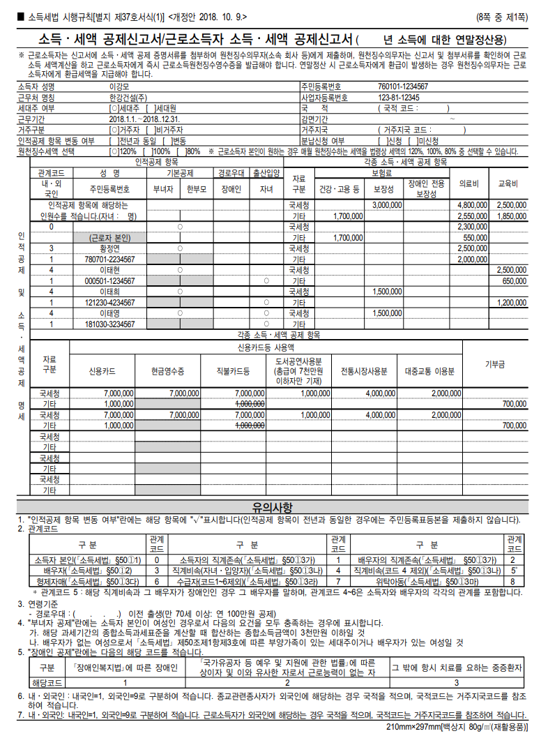 예를 들어 공제대상자가 70세 이상인 경우에 추가로 1명당 100만원을 공제 받게 됩니다. 총 1명당 인적공제로 250만원을 받게 되는겁니다. 제출 서류