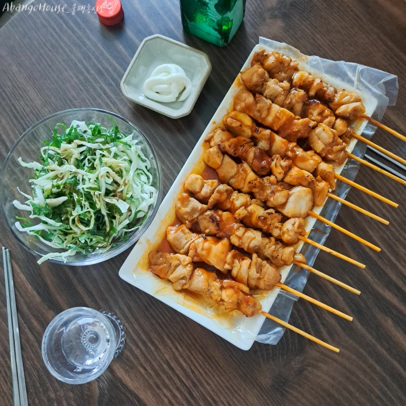 드디어 이마트 노브랜드 닭꼬치에 숯불매운양념을 먹어보았습니다>.