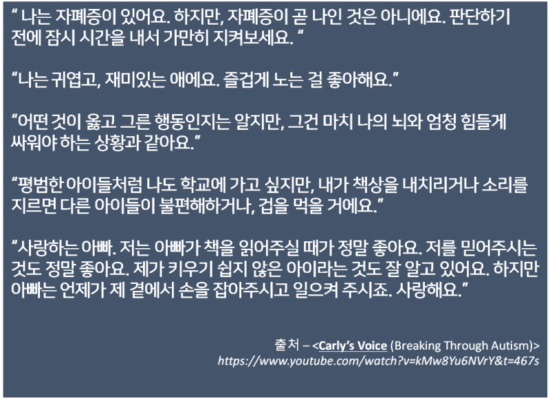 CARS 검사의 잘못된 적용과 혼란들잘못된 사례들과 긍정적인 사례들을 함께 알려드려 볼까 하는데요.먼저 잘못된 사례들에 대해서 알려드릴게요.- 30점 미만은 정상, 30점 이사은 자폐이다?- 30점이 되지 않아서 자폐증 아니라고 진단을 받은 후,   6년의 시간이 경과한 후 자폐증 진단을 받은 아이의 사례..그다음 긍정적인 사례에 대해 알려드려 볼게요.- CARS 점수가 26점인데, 자폐 경향을 보인다고 진단받은 사례.그리고 흔하게 발생하는 혼란들이 있는데요.- 카스점수가 30점이 되지 않으니, 아이가 정상이라고 하는데요~?- 30점이 넘지 않는데, 우리 아이가 자폐증 이라구요..?
