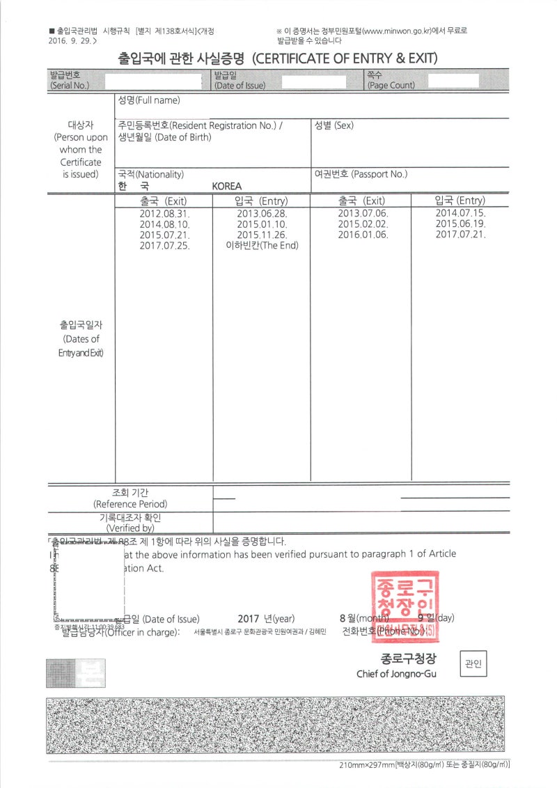 출입국 증명서 홈페이지에서 직접 검색하실 수 있습니다.